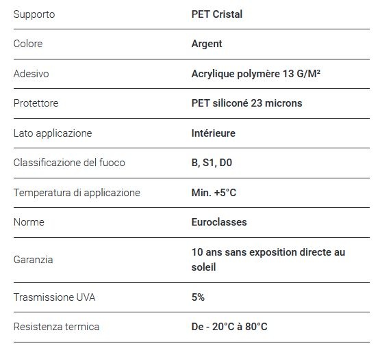 PELLICOLA A SPECCHIO COLORE ARGENTO PER APPLICAZIONE INTERNA